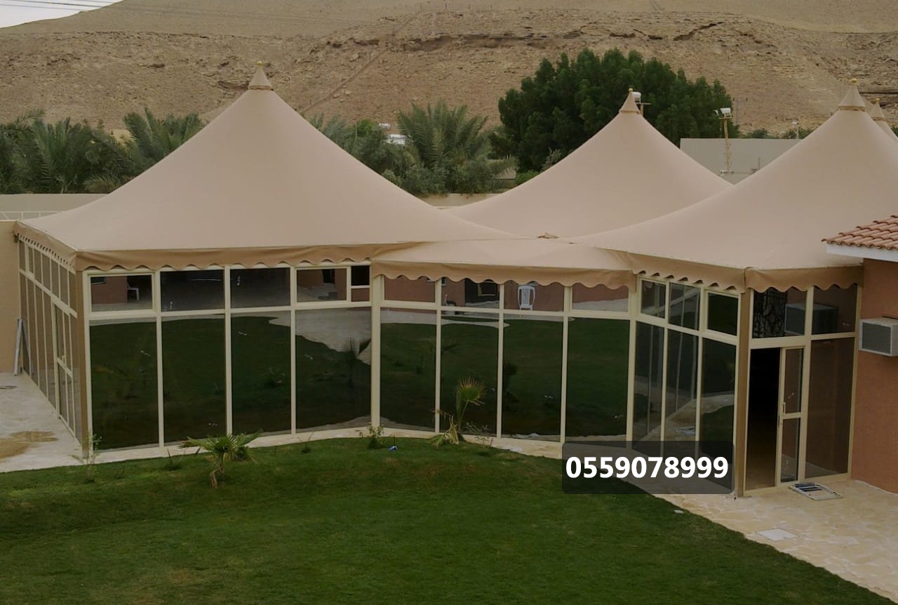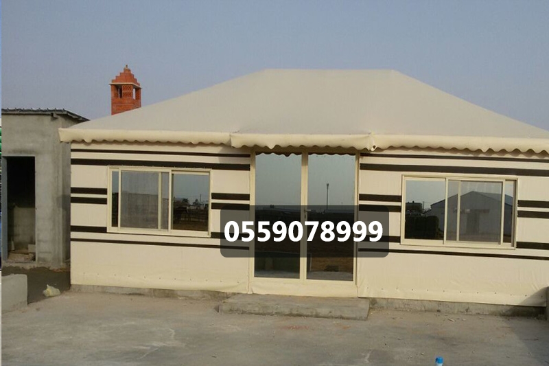 مواصفات بيت الشعر عازل مائي كوري – شعر مخطط نخبة أولى + غطاء من مادة PVC – ملتن – عازل حراري وطني – إرتفاع 2.5م أو حسب الطلب – شلش دائري قماش داخلي يتراوح سعر المتر بين 15-20 ريال – فرانشات – دناديش الأعمدة 8x8x1.25 ملي كورنيش على العقال الخارجي حسب الاتفاق – الصناديق20x20x1.25 ملي التيوبات2x4x1.25 ملي – المواسير1.5 بوصة x1.25 ملي – خشب سميك اندونيسي 9ملي – عمل واجهات زجاج فتحة الباب × فتحة المكيف الكهرباء + الالمنيوم + الفرش + الأرضيات على العميل فتحة شباك حسب الطلب
