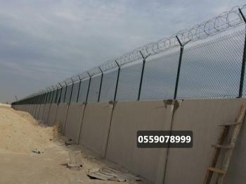 يتم اعتماد المتر الطولي للتوريد والتركيب من خلال عمل قواعد خرسانية عاديه على مسافات متقاربه وصب القواعد صبة خرسانية مقاومة وعمل عمدان من المواصير المجلفنة ويتم تركيب وايرات الربط و شبك حماية سفلي بالارتفاع المطلوب وعمل الاسلاك الشائكه حسب الطلب وتركيب البوابات حسب المخططات او الاقتراحات المراد تركيبها على اكمل وجه طبقا لأصول الصنعه وتعليمات المختصين والاستشاريين والمهندس المشرف.